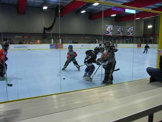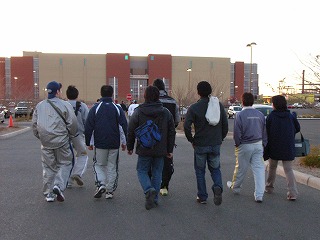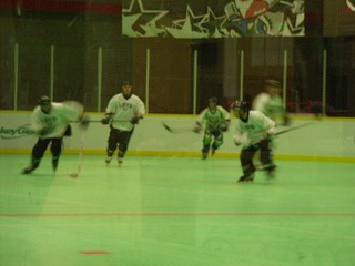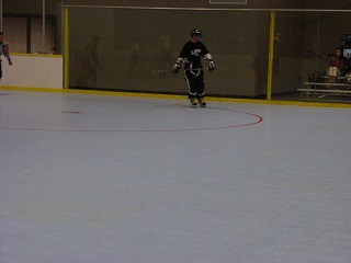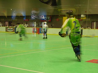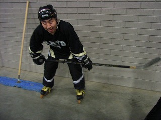 いよいよ試合開始。相手は今回の相手の中で一番ライバルと目されるチーム、その名もHomeless。ジャージも超シンプルでいいかんじ。チームLBYDはゴーリーOまっちゃんで臨む。試合はチームLBYDがかなり序盤押し気味に進めるも、こちらのミスから確実にチャンスを活かすHomelessと一進一退の攻防に。最後までもつれ結局2−2の引き分け。連携ミスがなければ勝てた試合だけにみんなちょっと悔いが残る試合となってしまった。そんな中、大型新人はその大型ぶりを発揮し、その長いスチックはアメリカ人も驚かせた。浪ちゃんもそのスピードを存分に見せた。Mission?くんは一番がんばり、一番緊張し、一番反省してたのが、初々しかった。余談ではあるが、筆者がリンクに出ている間、団長による筆者アテレコ大会が催されて爆笑だったらしい。ベンチから相手マークの指示が飛び交ったのであるが、それに対し筆者がマークを外すとすかさず次の指示が飛んでくるので、その度にベンチを向いて指さし確認を行った動作に合わせて「あっちでいいの?」「こっちじゃないの?」という台詞を当てていたが、これが絶妙にマッチしてたそうだ。自分で聞けなくて残念!