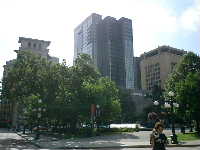 (ホテル前の公園。ここをはさんで会場があるんです)