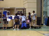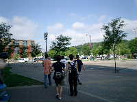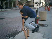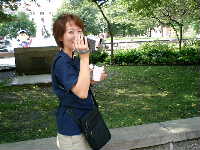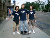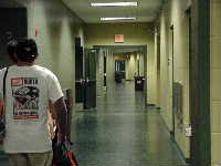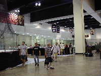 ロビーに居たスタッフのみなさんとBB系の選手数名と会場に向かう。ビデオ班ゴーリーいずみが熱心に町の様子を撮影している。今日はBB-T−シャツ星人が3人,面白いのでカメラに収める。昨日と同じくXcelを大回りして入口に向かって歩く一同。途中コンビニ方面から日系女性数名と遭遇。