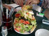 お腹が空いたので,K王・Tレフ・カツヲとともにセントポールの市内に夕食を食べに行こうということになった。まずはホテル方面に戻り,さらにダウンタウンと思われる方角に歩いてみたが,いっこうに商業地域らしき場所にならない。しかたなくそこら辺を小1時間歩き回り,結局ホテルに近いレストラン街に収まった。Wildちゅう店であるが,その名の通りかなり食べ物の作りがワイルドな店であった。味もかなりワイルド。やっぱりここはまぎれもなくアメリカだった!
