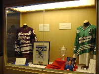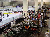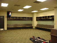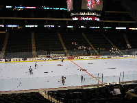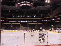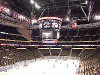 になっている。リンクの豪華さもそうであるが,客席の中段にはVIPルームが並んでいて,とてもエグゼクティブな雰囲気をかもし出している。もちろん,ロッカールームなどの施設もシャワー,ビデオルームなどを備え,さすがNHL仕様ということで豪華な造りだ。