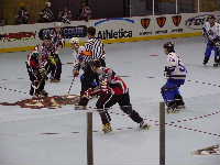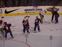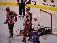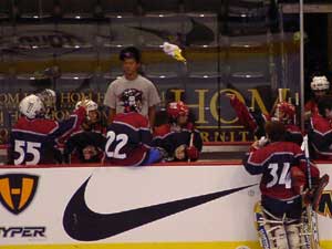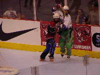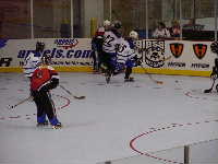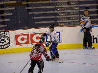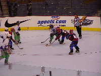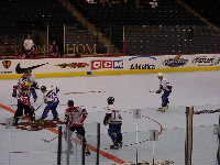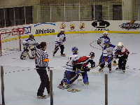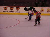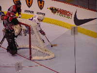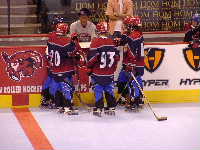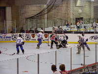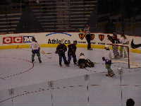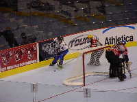 Pantsというとぼけた名前のチーム。名前はふざけていても既に1勝を上げているチーム。強敵にはちがいない。第1ピリオドこそ0−2とリードを許すも,第2ピリオド前半になると今大会初得点を上げ調子に乗る。1点取られたものの,再び試合残り時間わずかで1点差に詰め寄ったが,ここで万事休す。第1試合同様1点差で負けてしまった。それでも第2ピリオドでの2得点は明日につながるものと思われる。もちろん,試合の迫真に迫るレポートは高田夫妻によるMHL公式レポート(