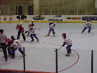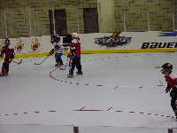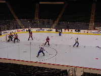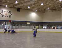 フリーウェイに乗り,ミネアポリスを通過,景色はどんどん田舎になっていく。30分ほど走りフリーウェイを降り,農場のようなところに入ると,目指すリンクがあった。遠目から見ると農場の倉庫のような建物であるが,内部はかなり設備の整ったホッキーリンクであることが判明。Hopkins