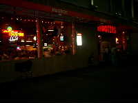 ということで団長・K王・Tレフとともに「HOOTERS」に入る。店内の雰囲気はNASCAR(アメリカのレース)をテーマにしたスポーツバー風でいたって健全(←団長のためにも強調)である。もちろん家族連れもいる。ただし行こうと主張したのは親父である可能性がものすごく高い。食べ物といえばオーソドックスなアメリカ料理,サンドイッチ,ハンバーガー,HOOTERウィングス,魚介類もある。ほらなにもやましいとこはないのだ,と主張しているなか噂のHooter