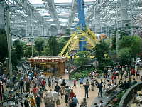 切り替えの速い一行はこの界隈(いやミネソタ州界隈といってもいい)で一番の名所北米最大の屋内ショッピングモール「モールオブアメリカ」へ向かうことに。わりと今回の旅で非ホッケースポットとしては唯一行ってみたかったとこである。特にモール中央にある遊園施設「キャンプスヌーピー」はウッドストックファンである筆者には楽しみである。ほどなく横幅的に巨大な建造物が出現。あたり一面のクルマが吸い込まれていく様は圧巻だ。我々も流れに乗って駐車場に。クルマを停めていざ「モールオブアメリカ」に突入!