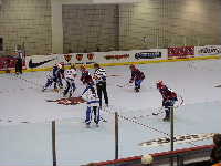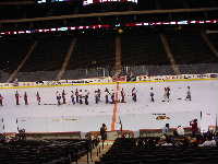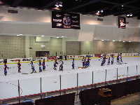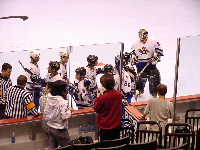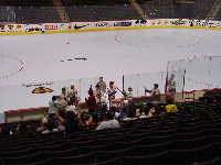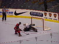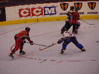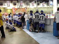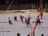 さて今回の遠征最後の試合メイプル対イリノイの強豪マッドハッターズの一戦がメインアリーナでFaceOff。先程はこてんぱんにやられたが,今回はなんとか立て直して初勝利を狙ってもらいたい。そうそう,本日最後であるが,メイプルの奮闘ぶりは高田夫妻によるMHL公式レポート( http://www.inline-hockey.org/narchfin/2002/index.html )をチェック!