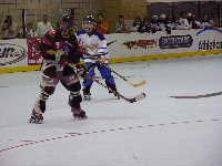 休む間もなく今度はRink2にて引き続きチーム・ミスコンの2試合目,予選最終試合である。ここまで3連敗を喫してしまったが,最後になんとしても1勝をあげてほしい。やはり最後の試合ということで選手一同気合いが入った試合となった。選手の活躍ぶりは高田夫妻によるMHL公式レポート( http://www.inline-hockey.org/narchfin/2002/index.html )を読めば一目瞭然,勝つには至らなかったが今大会貴重な1ポイントをあげることができた。それでは写真でお楽しみください。